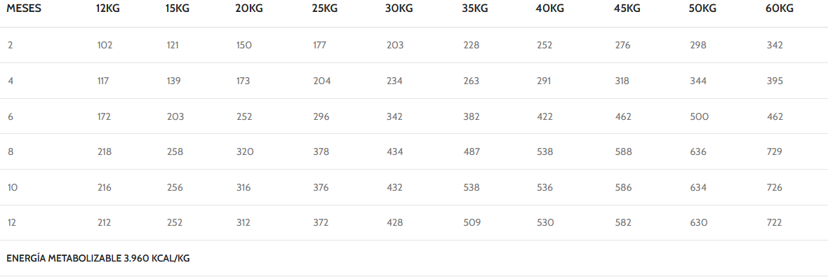 La cantidad diaria de este alimento que necesita su perro depende de diversos factores como el peso, la actividad diaria, edad, ambiente natural.