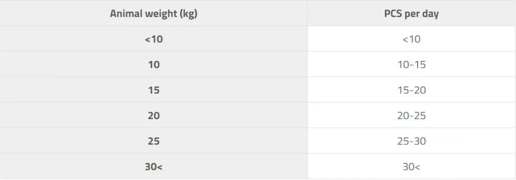 - Sirva diariamente como recompensa por el entrenamiento de motivación positiva, o como un regalo para los momentos compartidos durante el día.